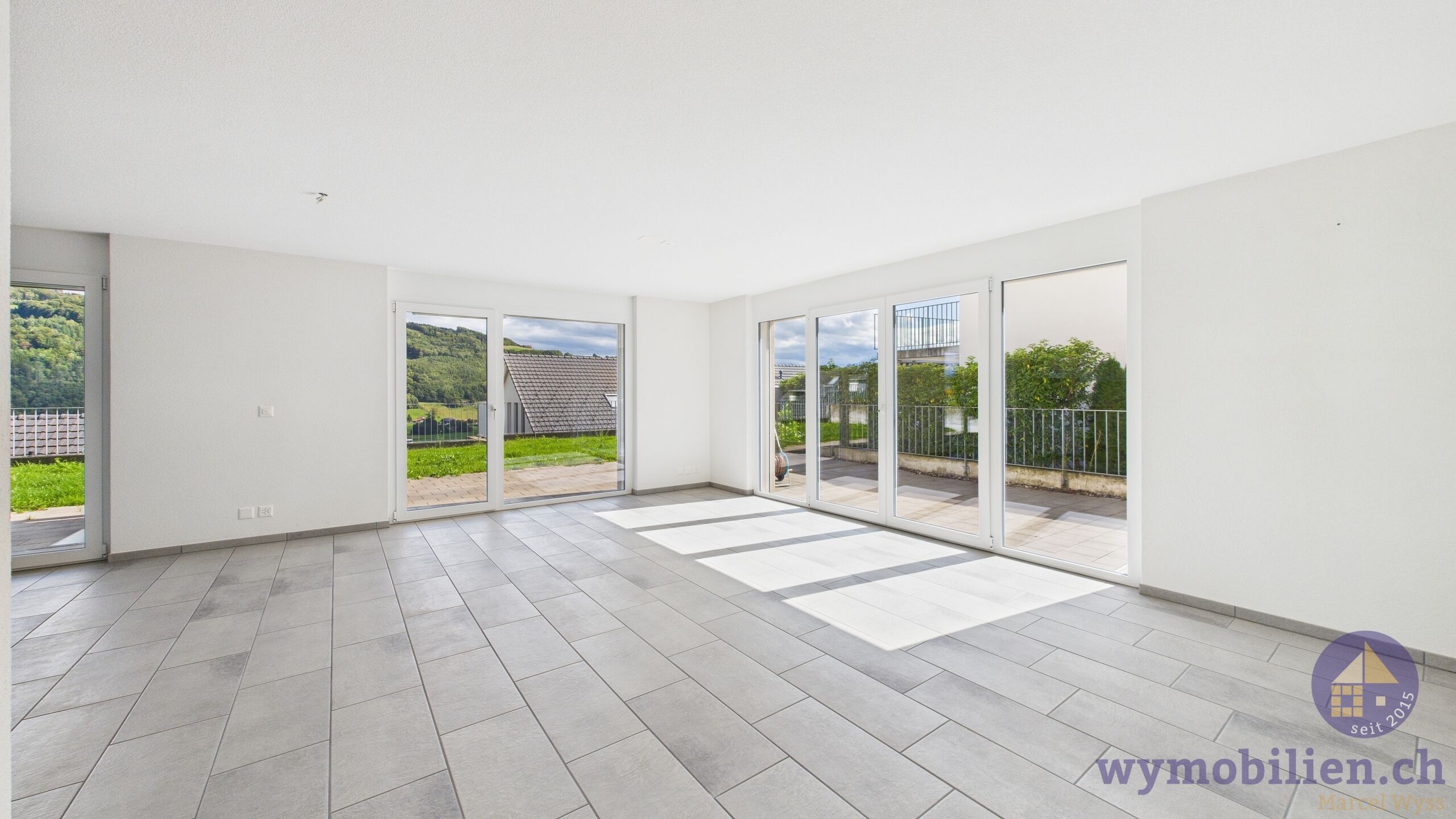 - Grosszügiger Wohn- und Essbereich mit direktem Zugang zur Terrasse und zum Garten