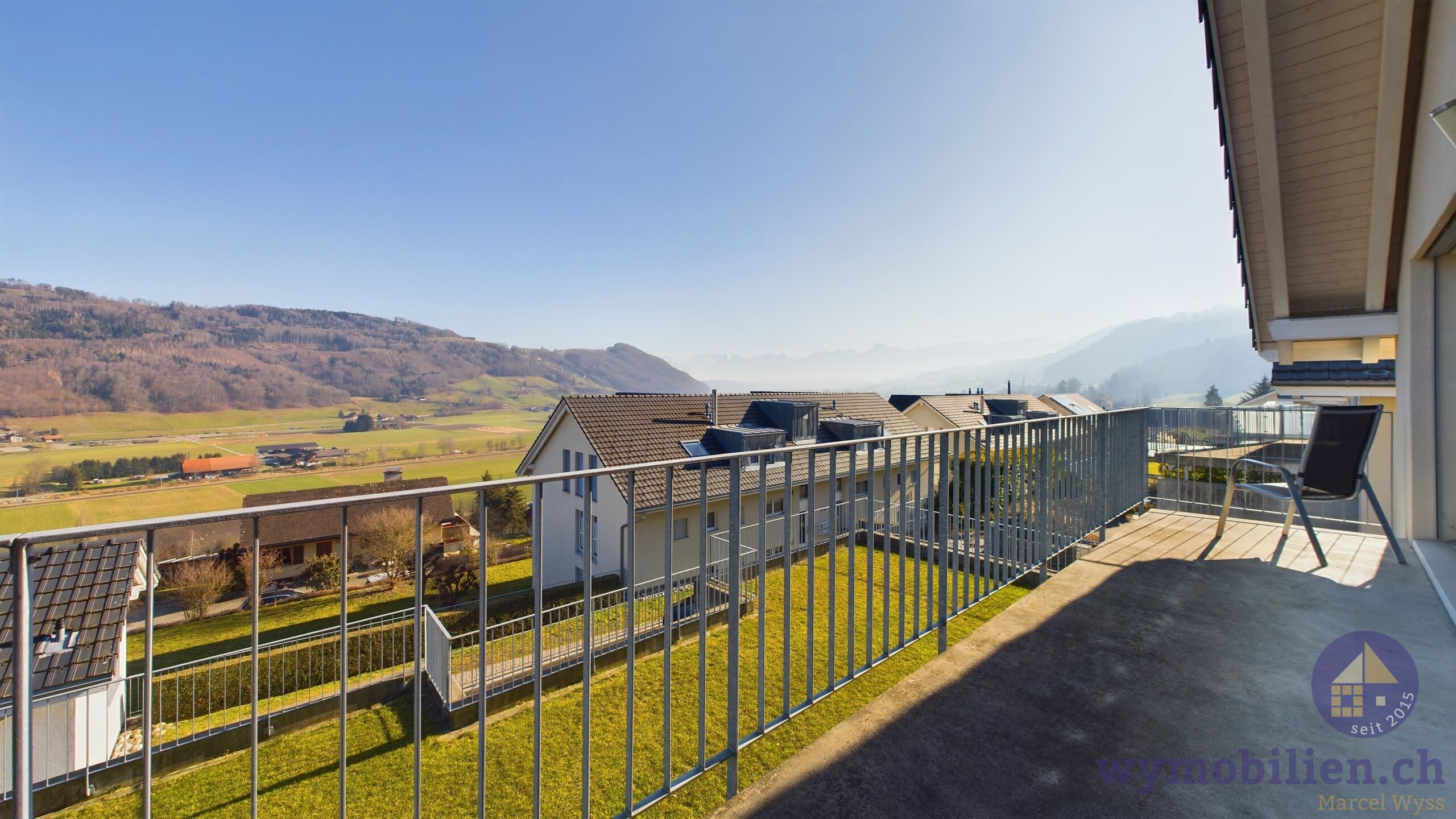 - Balkon mit wunderschönem Ausblick ins Grüne und auf die Alpen